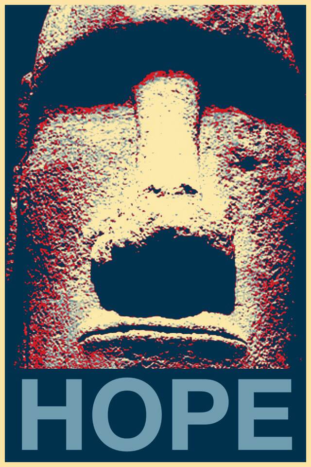 I can picture Easter Island statues