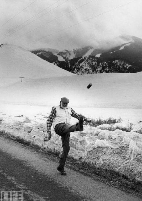 Crédit image : Life – Ernest Hemingway kicking a can down the road